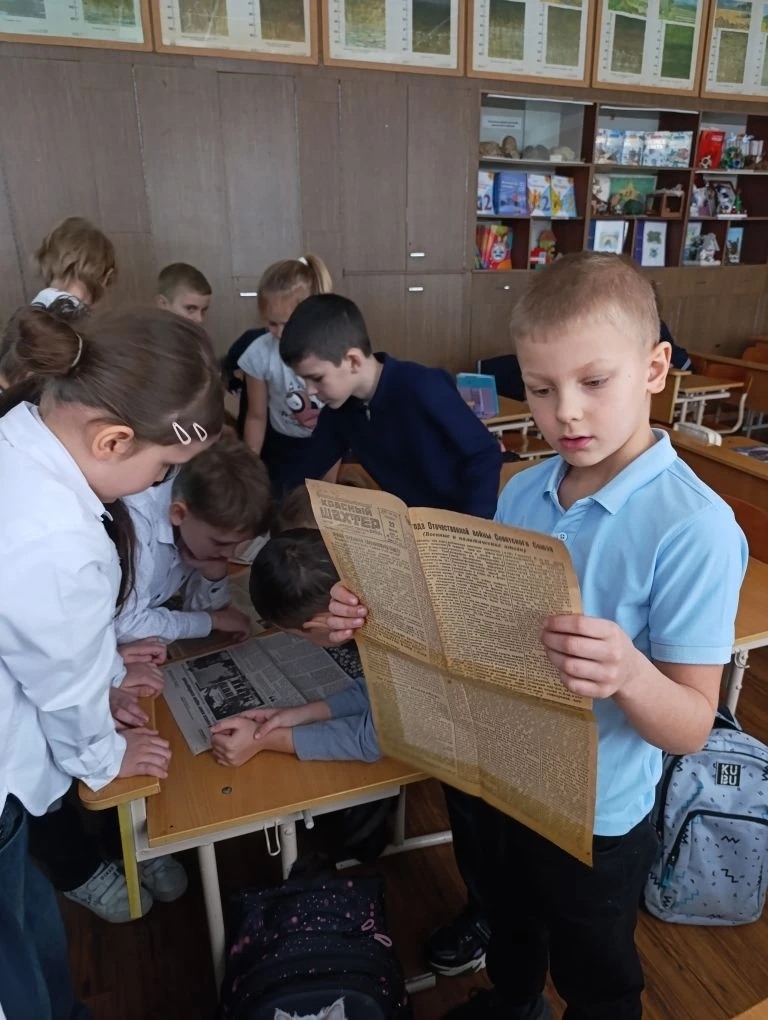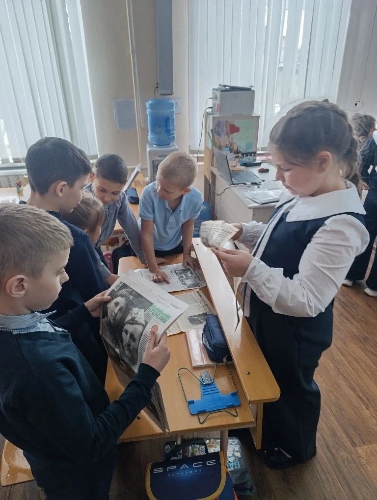 Особую эмоциональную атмосферу создал урок во 2 классе под руководством Смоляковой Оксаны Николаевны. Оксана Николаевна принесла подлинные документальные источники — старые газеты, журналы, книги. Дети с большим интересом и волнением рассматривали пожелтевшие страницы: среди них была газета 1944 года, в которой рассказывалось о тех, кто освобождал наш город. Казалось, время на минуту остановилось — ребята вслушивались в историю, пытались представить подвиги тех далёких людей.
