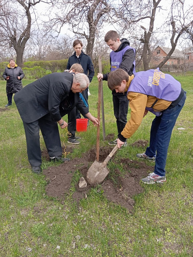 Активисты 9-х классов вместе с помощниками депутата приняли участие в посадке новых деревьев. Благодаря поддержке депутата Партышева Юрия Ивановича наша школа пополнилась пятью красивыми рябинами и двумя величественными клёнами.