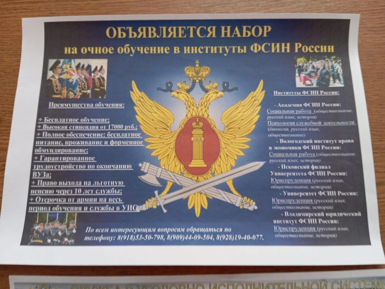 23 сентября в нашей школе состоялась профориентационная встреча с представителями ФСИН и военкомата.